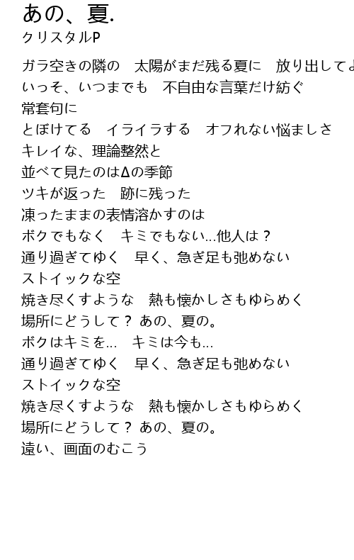 | [02:39.3] | 場所にどうして? あの、夏の。 |