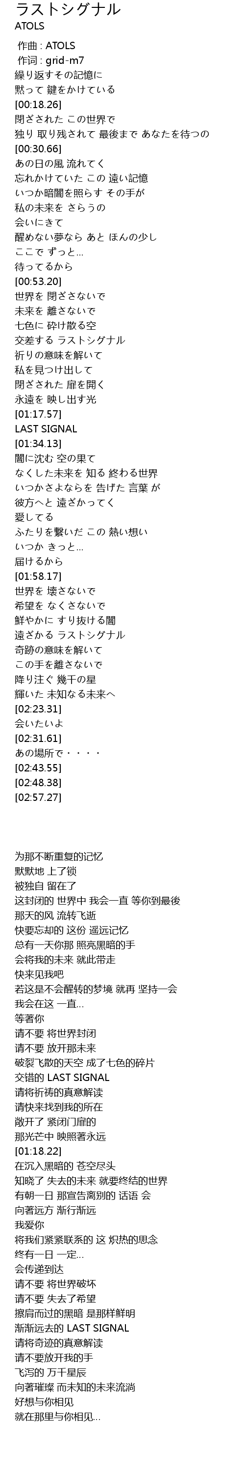 | [01:02.21] | 交错的 LAST SIGNAL |