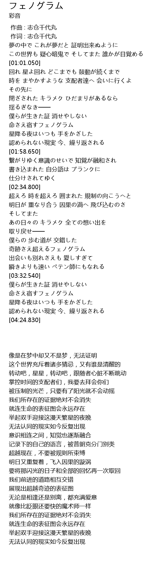 | [03:13.310] | 奇跡さえ超えるフェノグラム |