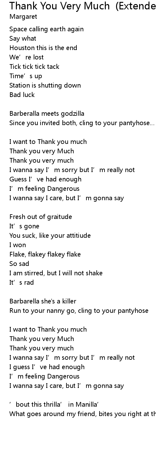 | 歌曲 | Thank You Very Much (Extended) |