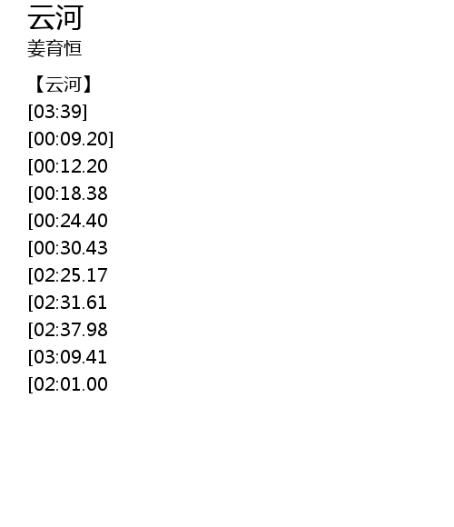| [01:09.12][00:12.20] | 云河呀云河 |