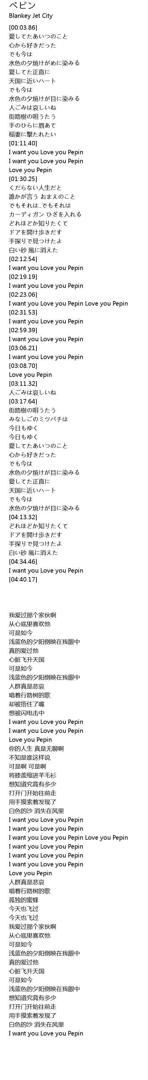 | [02:26.37] | I want you Love you Pepin Love you Pepin |