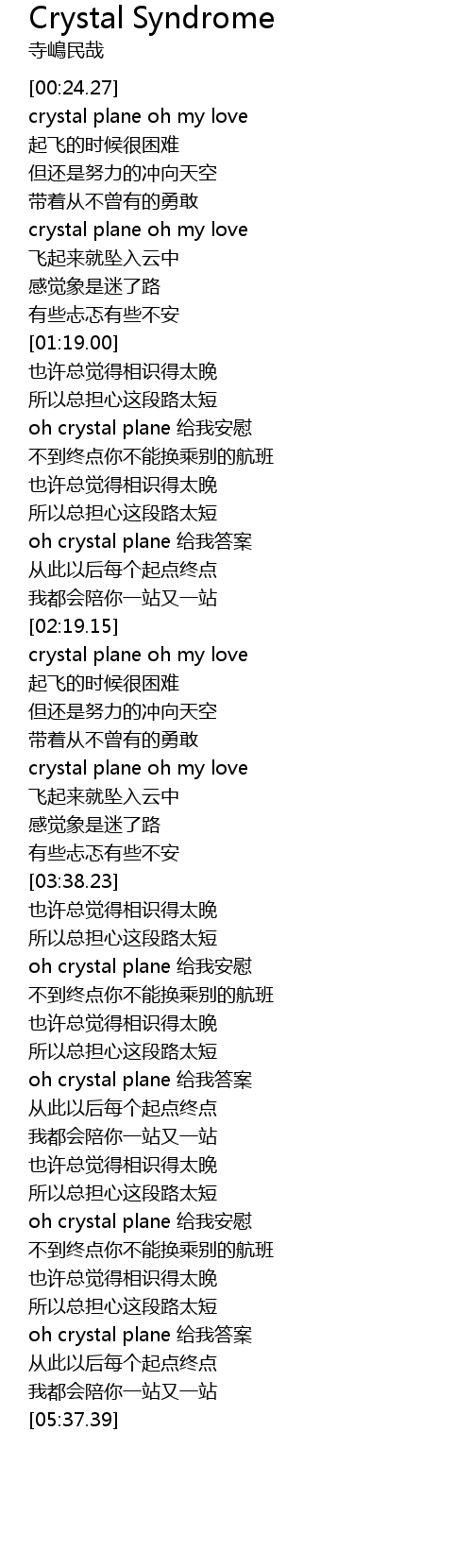 | [04:51.89] | oh crystal plane 给我安慰 |
