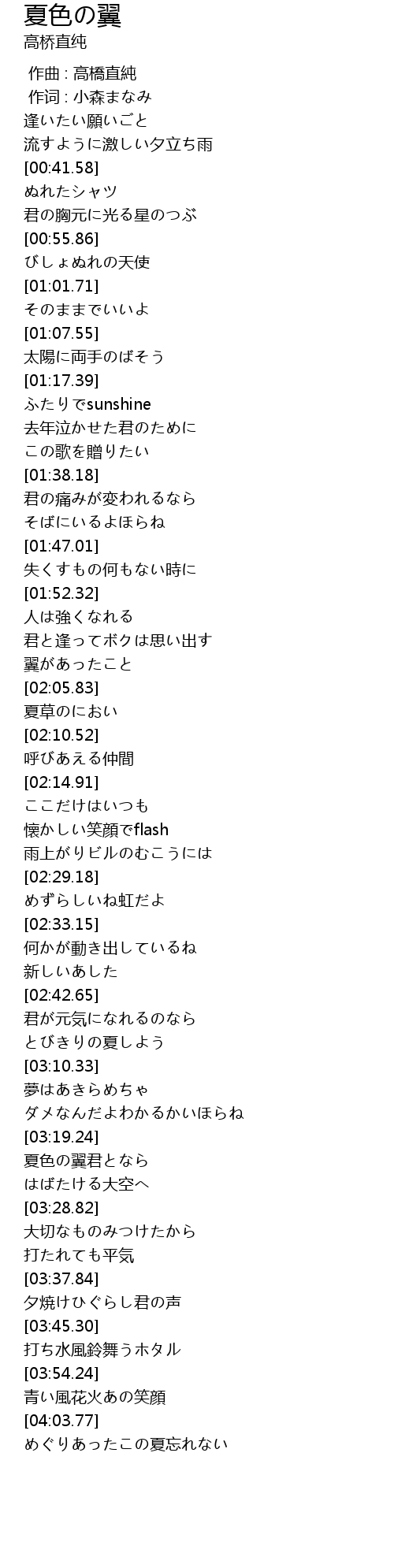 | [04:06.74] | めぐりあったこの夏忘れない |