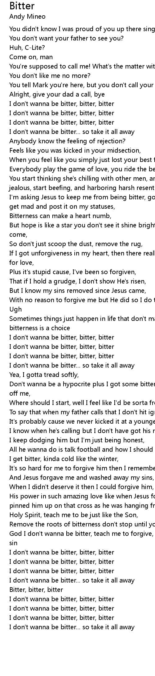 I don't wanna be bitter, bitter, bitter |