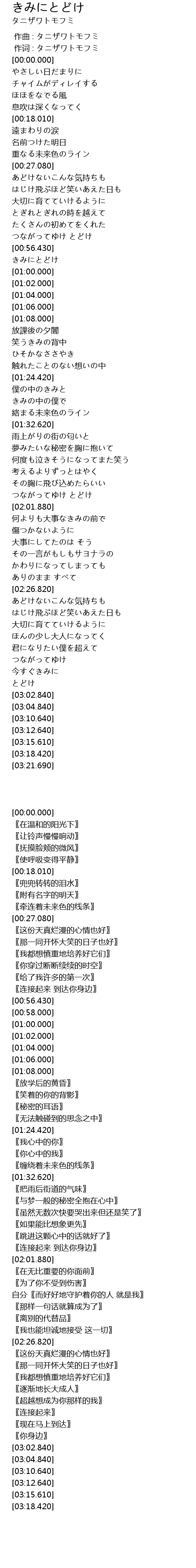 作词 : タニザワトモフミ |