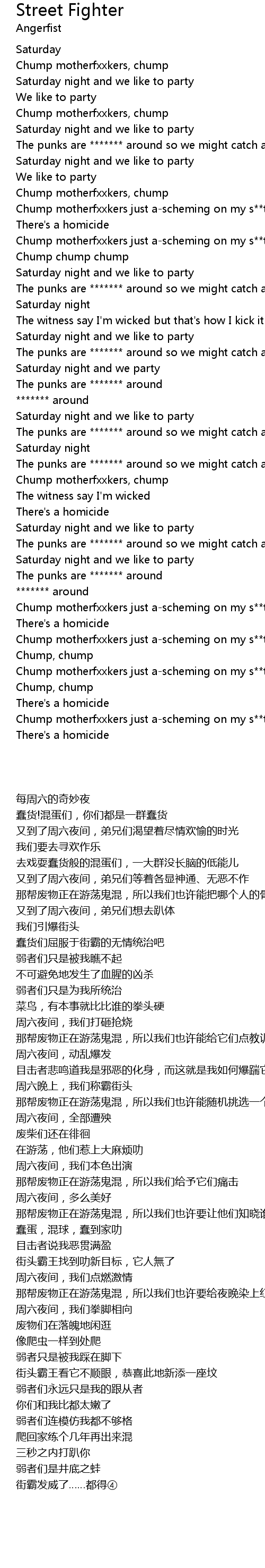 Street Fighter 歌词