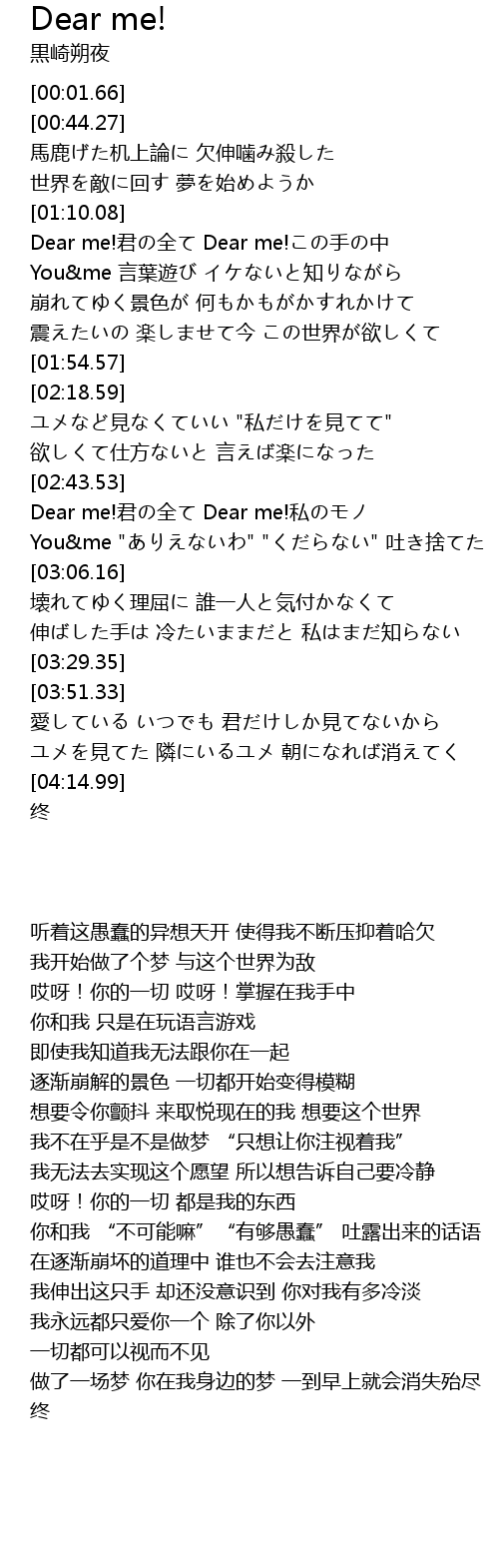 | [02:44.25] | Dear me!君の全て Dear me!私のモノ |