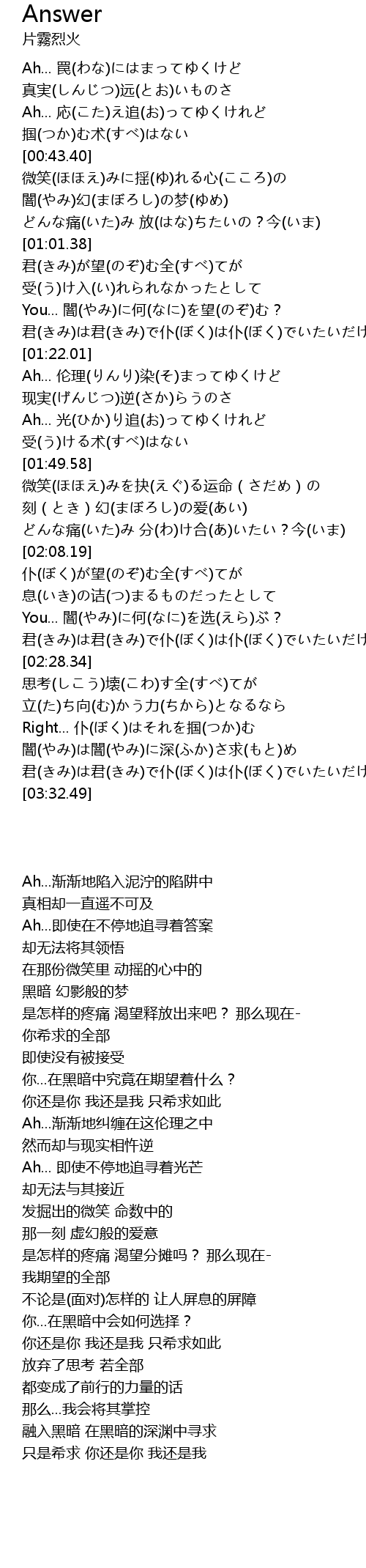 | [00:34.53] | Ah...即使在不停地追寻着答案 |