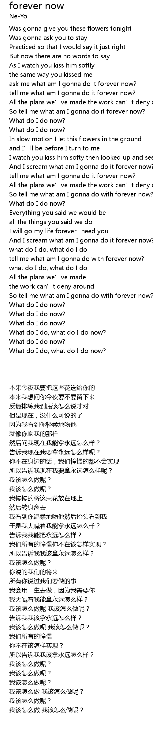 | [00:44.97] | tell me what am I gonna do it forever now? |