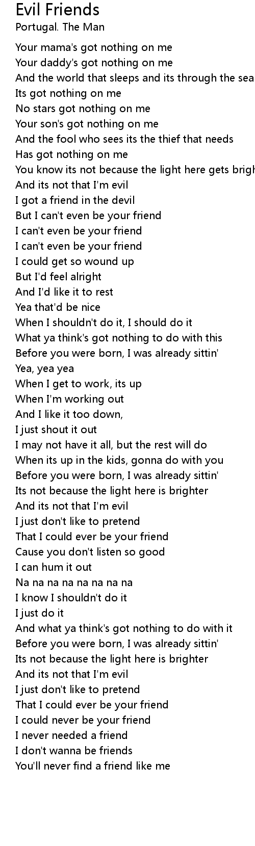 And its not that I'm evil |