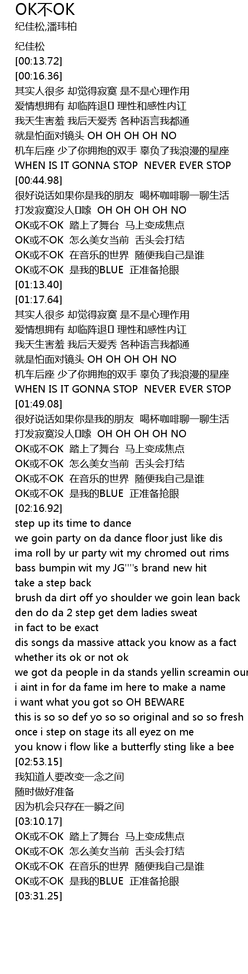 | [03:21.03] | OK或不OK 在音乐的世界 随便我自己是谁 |