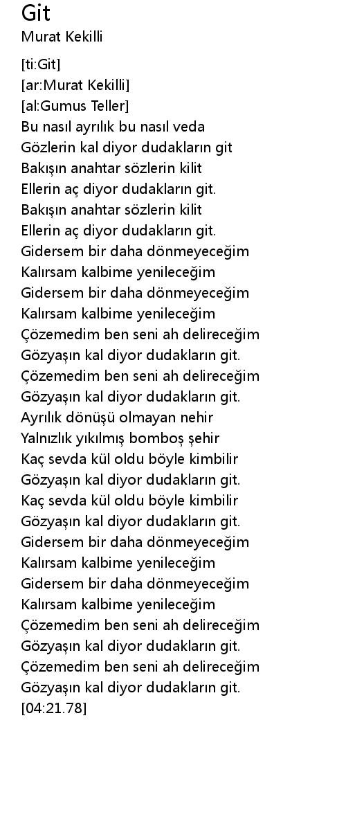 | [04:14.31] | G zya n kal diyor dudaklar n git. |