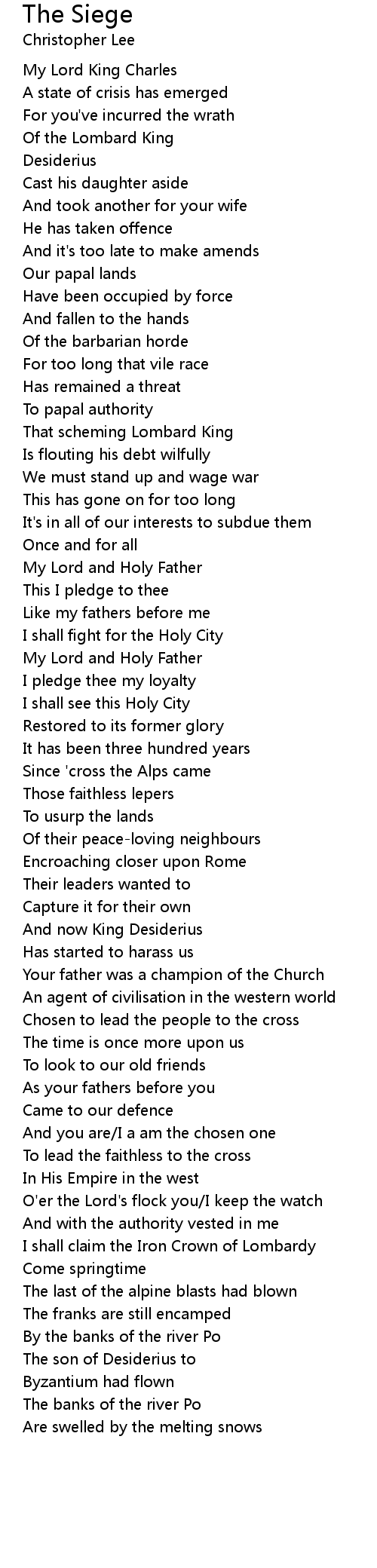 Since 'cross the Alps came |