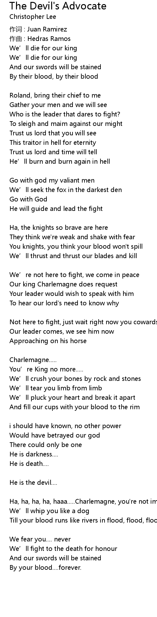 | 歌曲 | The Devil's Advocate |