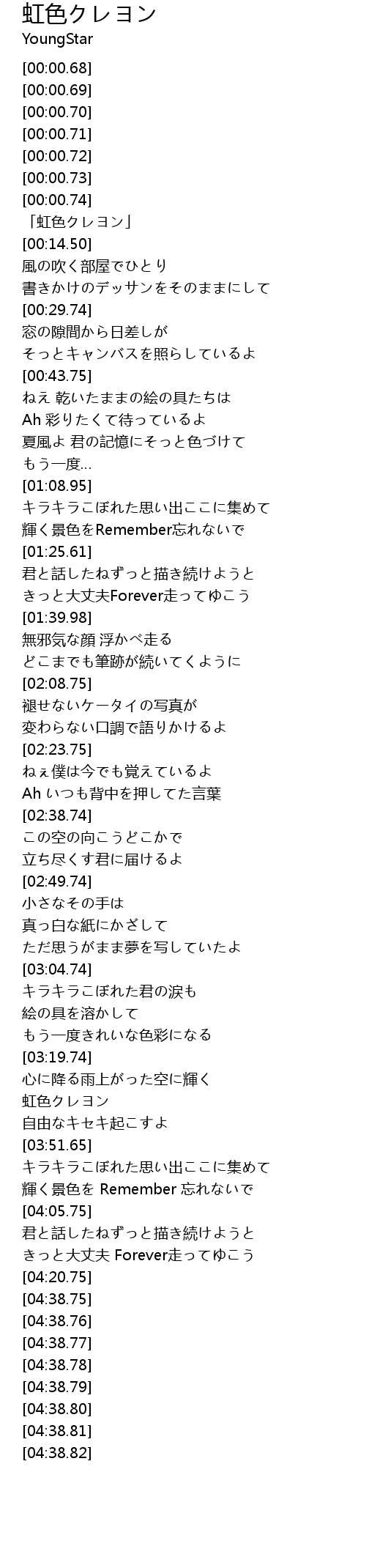 | [02:24.75] | ねぇ僕は今でも覚えているよ |