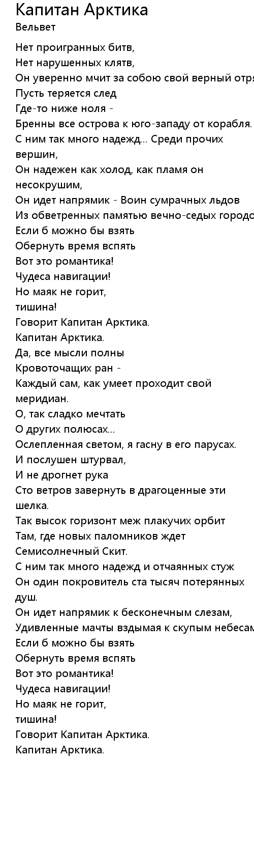 Капитан Арктика 歌词