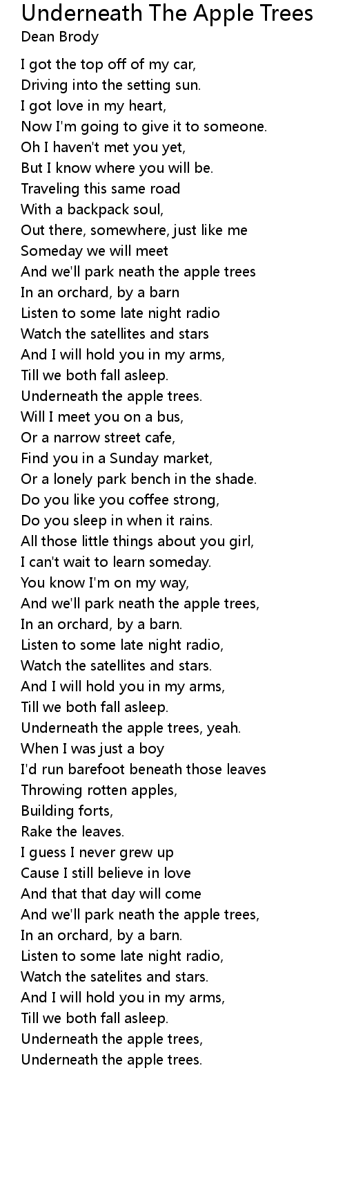 And we'll park neath the apple trees, |