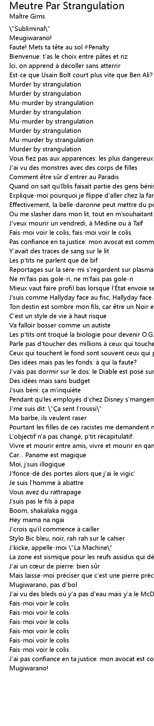 | 歌曲 | Meutre Par Strangulation |