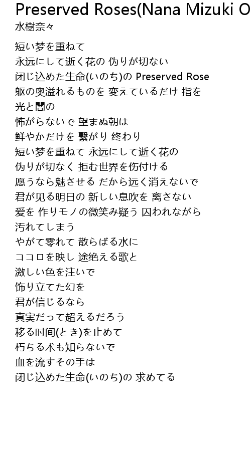| 歌曲 | Preserved Roses(Nana Mizuki Only) |