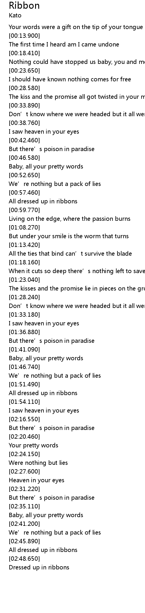 | [01:24.220] | The kisses and the promise lie in pieces on the ground |