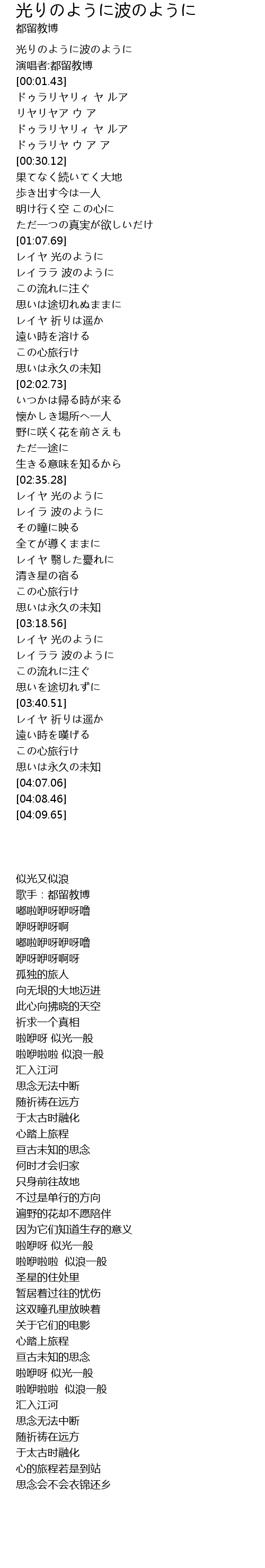 | [00:00.00] | 光りのように波のように |