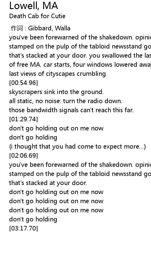 | [00:00.00] | 作词 : Gibbard, Walla |