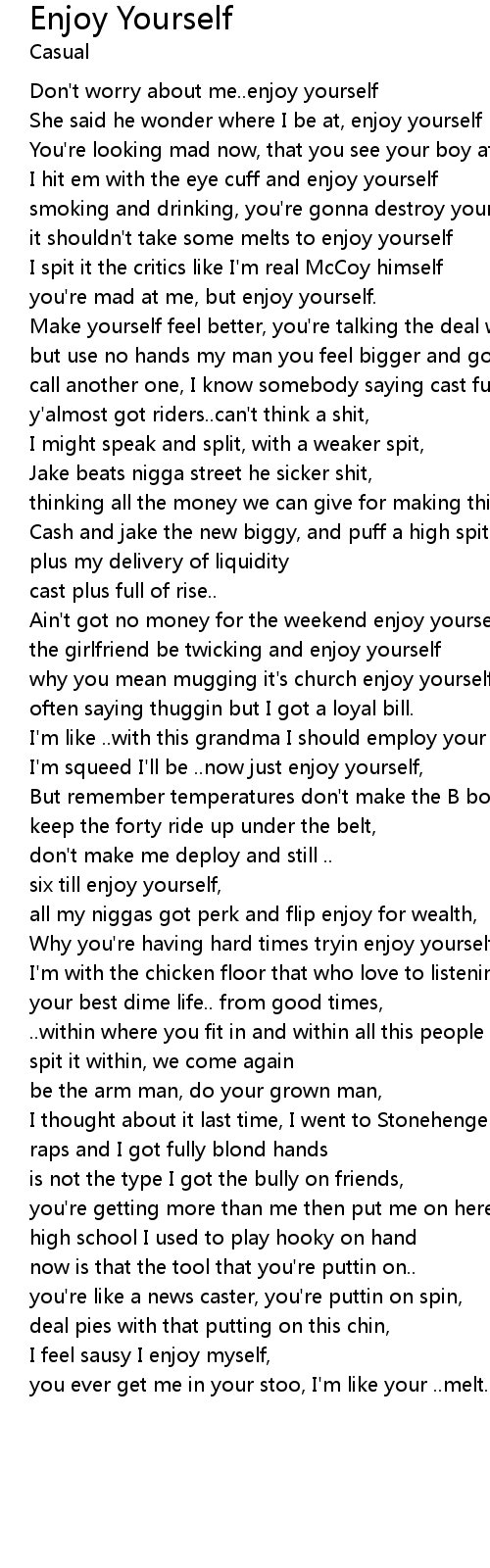She said he wonder where I be at, enjoy yourself |