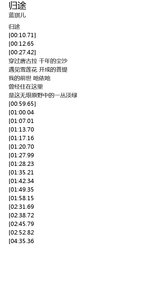 | [00:31.92] | 穿过唐古拉 千年的尘沙 |