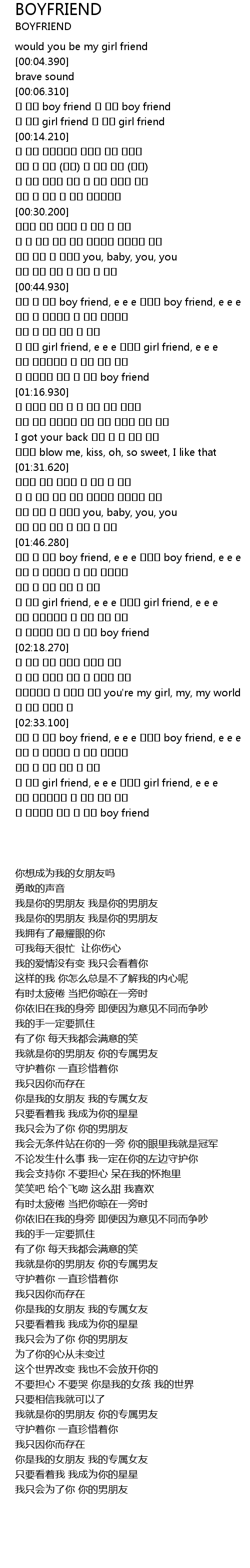 | [02:33.300] | 오직 난 너의 boy friend, e e e 너만의 boy friend, e e e |