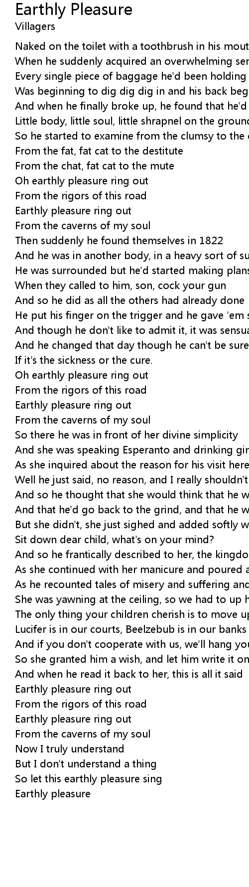 Oh earthly pleasure ring out |