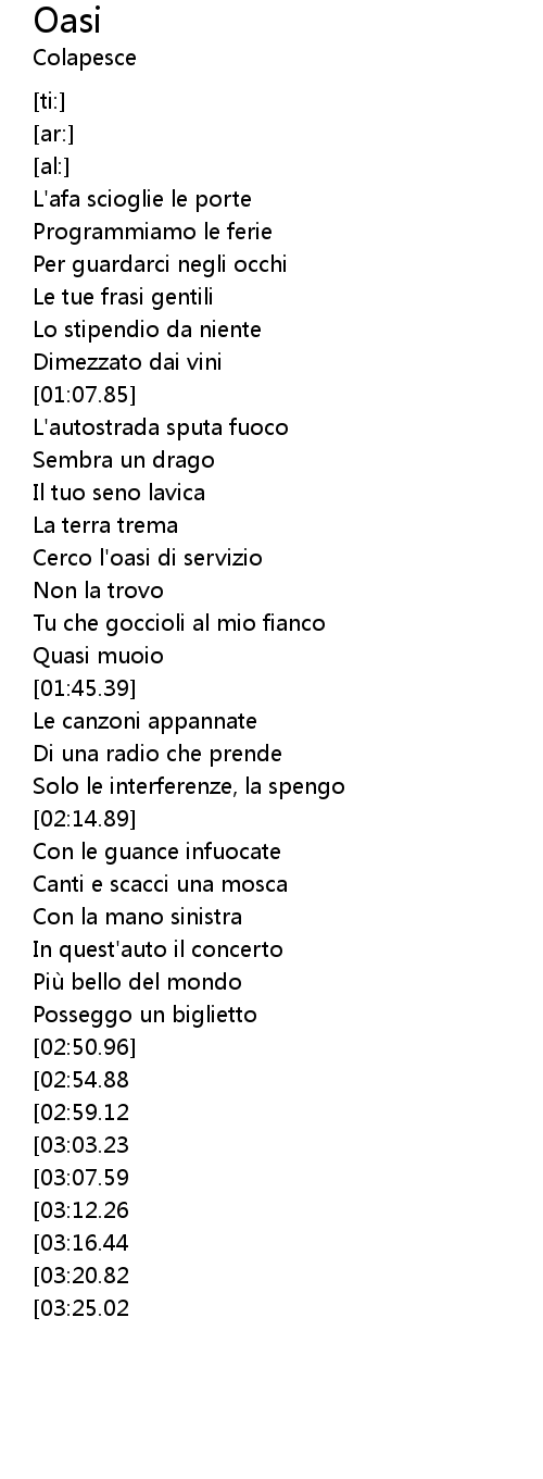 | [01:27.65] | Cerco l'oasi di servizio |