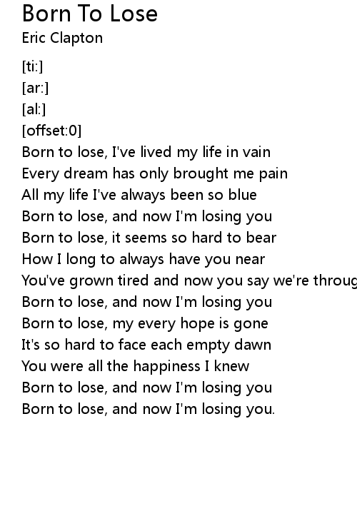 Born to lose, I've lived my life in vain |