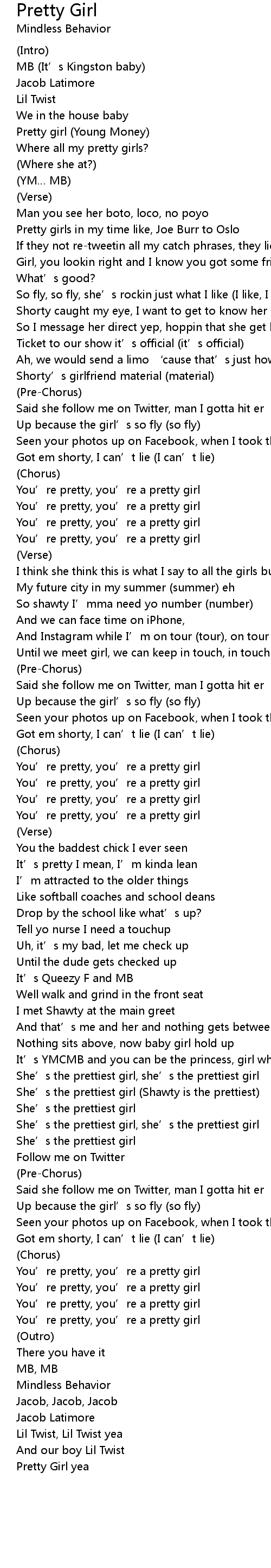 | Pretty girl (Young Money) | |