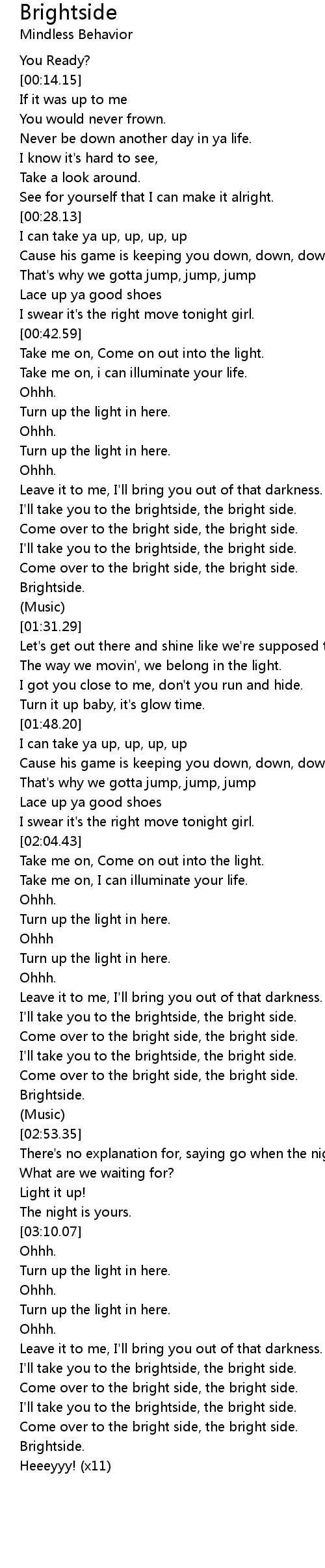 I'll take you to the brightside, the bright side. |