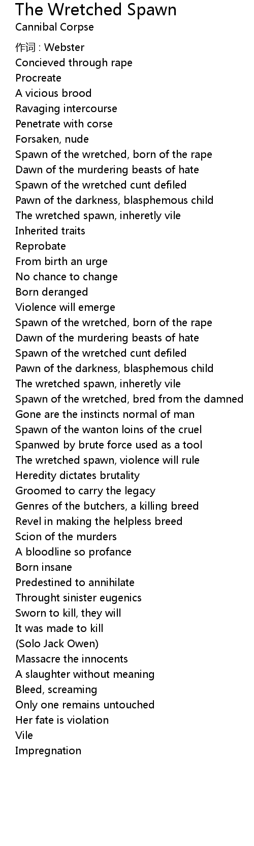 | Spawn of the wretched, born of the rape | |