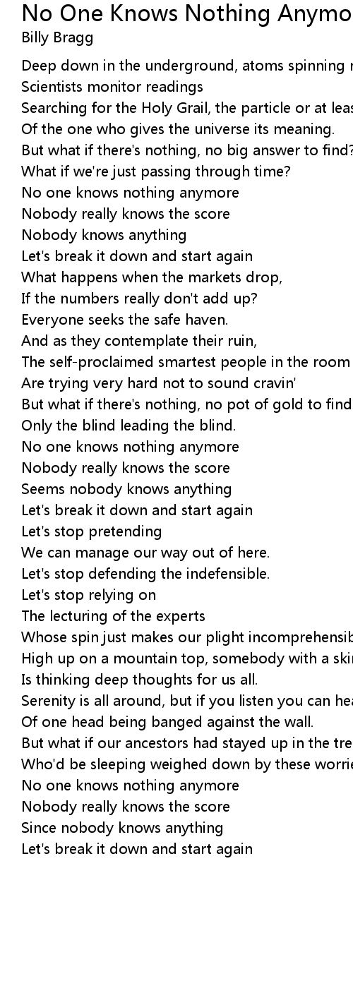 No one knows nothing anymore |