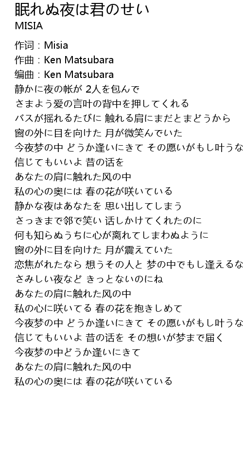 | 今夜梦の中 どうか逢いにきて その愿いがもし叶うなら | |