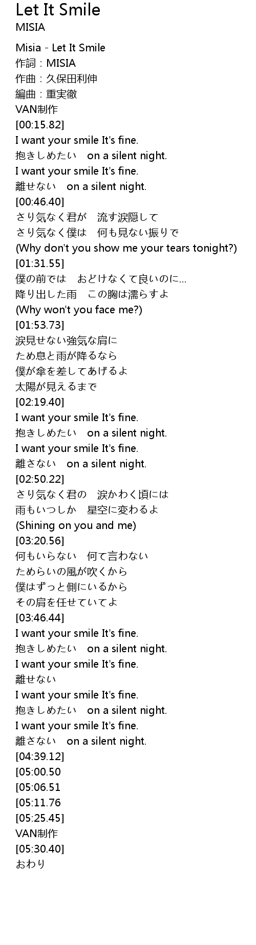 | [00:00.00] | Misia Let It Smile |