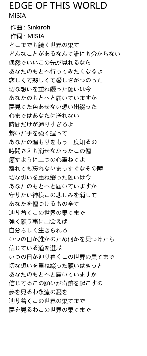 | [03:44.89] | 辿り着くこの世界の果てまで |