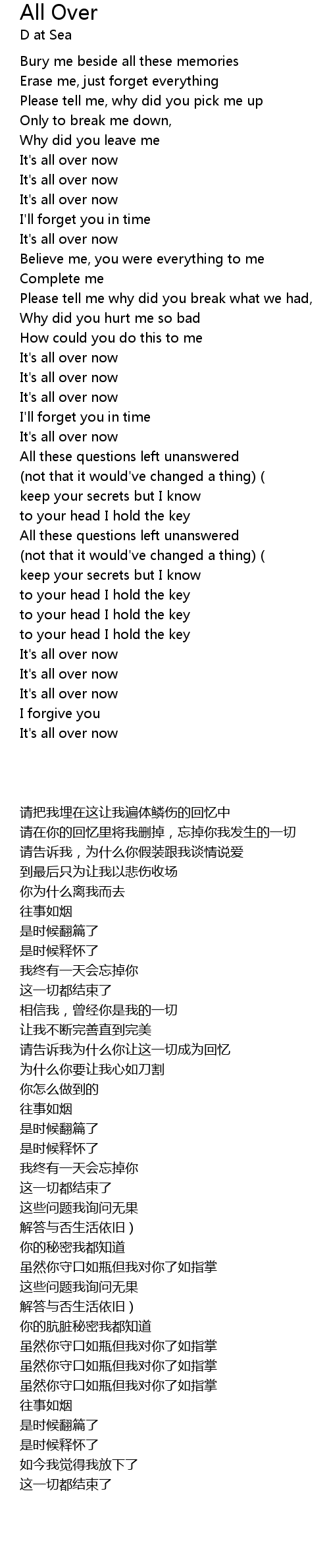 | [01:51.10] | It' s all over now |