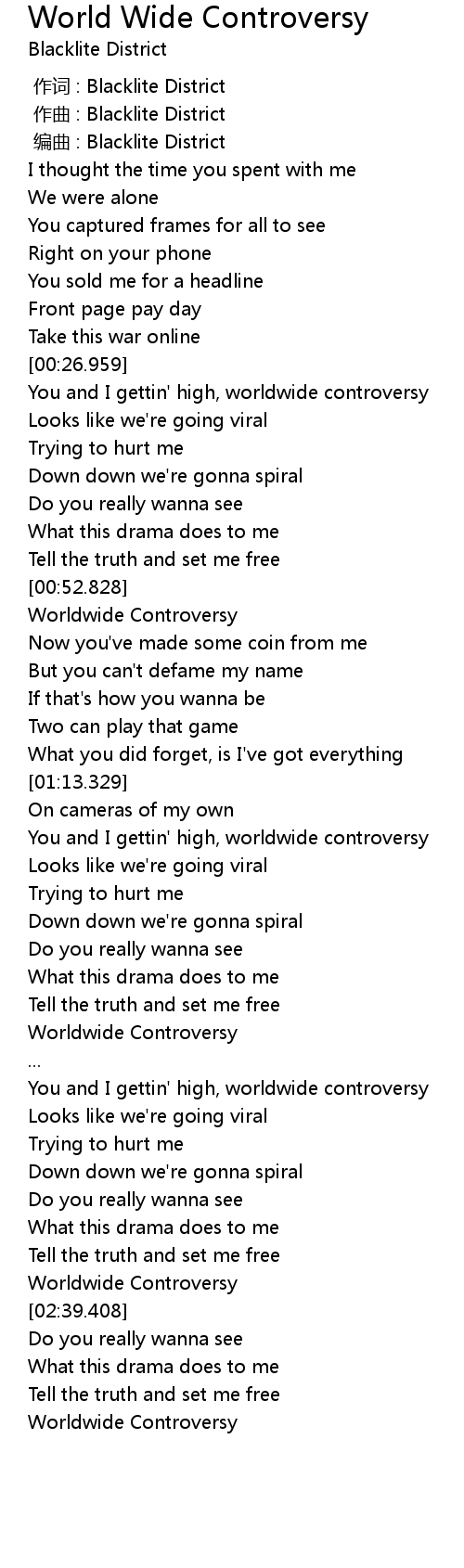 | [02:49.158] | Worldwide Controversy |