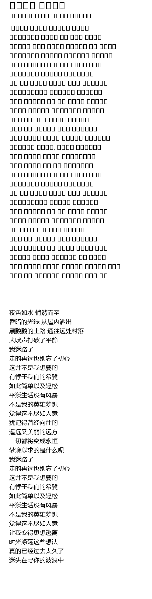 | [00:18.88] | 黑黢黢的土路 通往远处村落 |