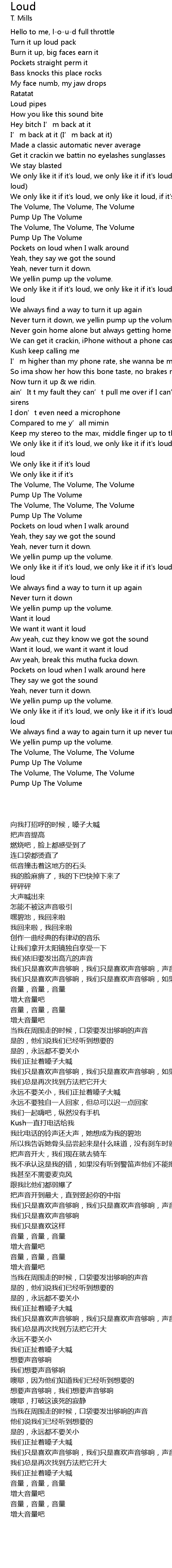| [01:23.62] | Never turn it down, we yellin pump up the volume. |