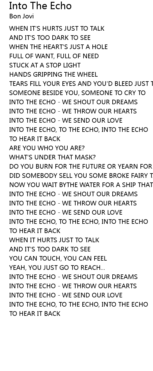 INTO THE ECHO, TO THE ECHO, INTO THE ECHO |