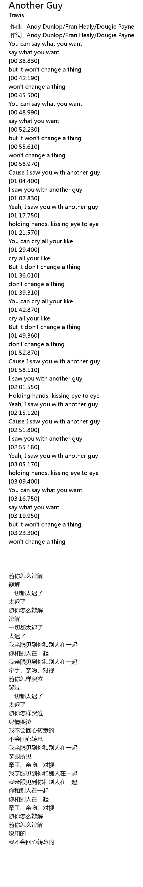 | [00:01.00] | zuò cí : Andy Dunlop Fran Healy Dougie Payne |