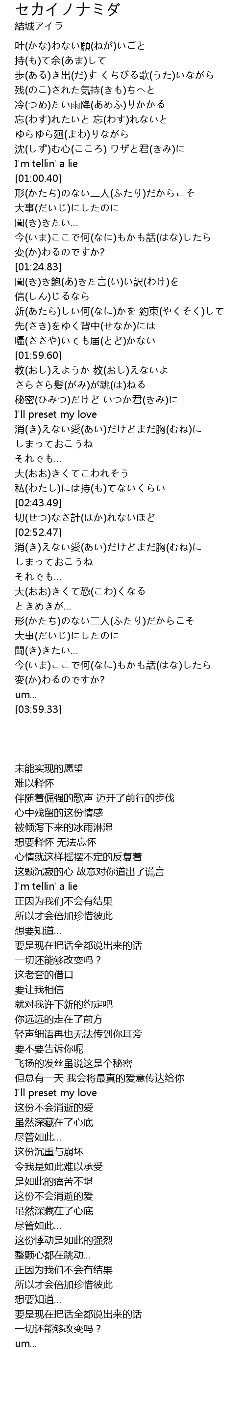 | [00:58.36] | I' m tellin' a lie |