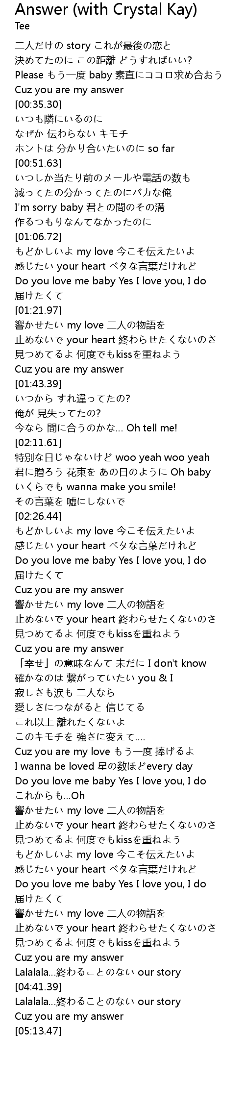 | [04:36.24] | Cuz you are my answer |