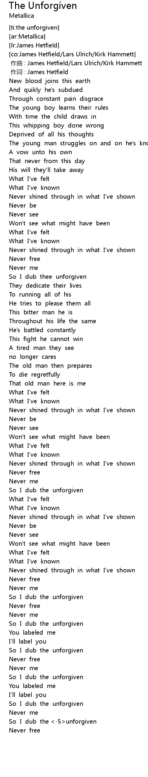 | [00:01.00] | 作词 : James Hetfield |