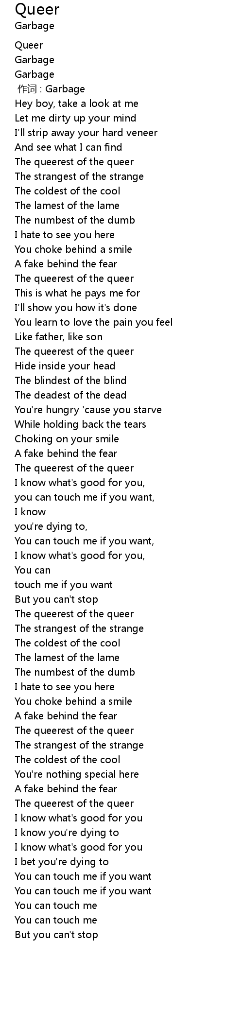| [00:00.00] | 作词 : Garbage |